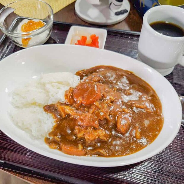 朝の9時から10時まで限定の「トーストセット」や、ちょっと珍しい「コーヒーぜんざい」も気になりますが、今回は「カレーライスセット」を注文しました。