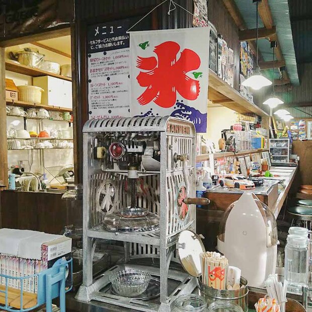 このかき氷機も、北陸の地震で被災し使えなくなっていたものを、復興支援の気持ちを込めオーナーが自ら分解・修理し、使えるようにしたのだそうです。