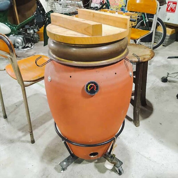 かき氷がシーズンオフとなる11月からは、ごらんの大きな壺でじっくり丁寧に焼き上げられた「壺焼きイモ」が今年も登場します。