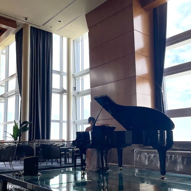 特別なひとときに心地よさをプラスしてくれるのが、ピアノの生演奏です。その日によってピアニストは変わり、クラシックやポップスなど鑑賞できるジャンルが異なります。また、夜になるとボーカルやバンドなどが加わるそう。