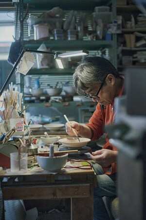 「TOU」が大切にしているのは、「作家」ではなく「作り手」としての誇り。作家が名前を出して売るのに対し、作り手はあくまで地場産業の分業の一つのプロフェッショナル。その表現は控えめでありながら、料理人と同じく、“主役は素材”という思いを込めて器をつくっている。