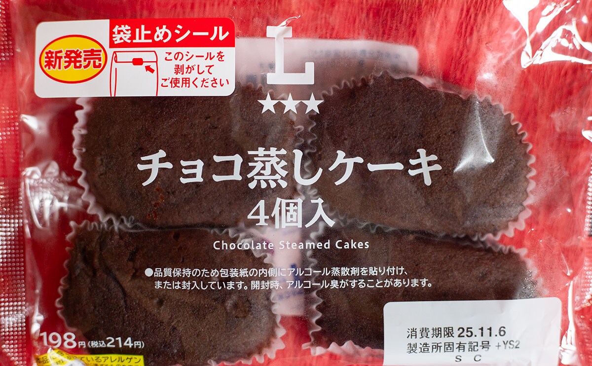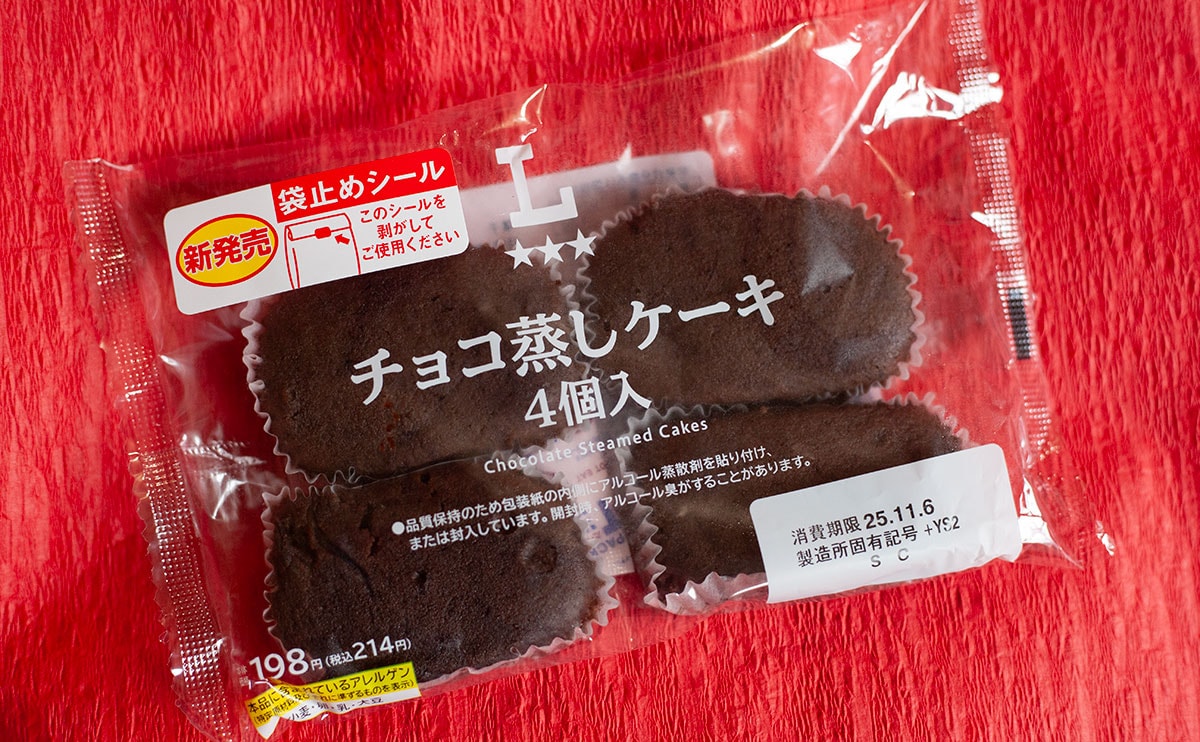 2025年10月28日(火)、ローソンは、「チョコ蒸しケーキ 4個入」(税込214円)という新商品を発売しました。