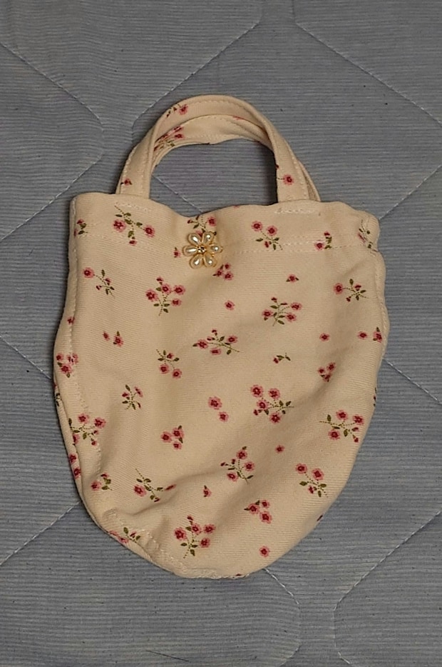 切り落としたフード部分が、娘用の小さなポーチに大変身。