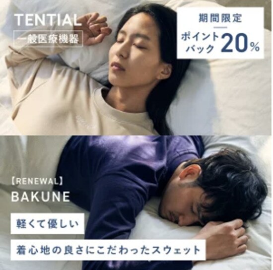 シリーズ累計販売数70万枚(2024年8月時点)の疲労回復パジャマが20%ポイントバックで購入できます!