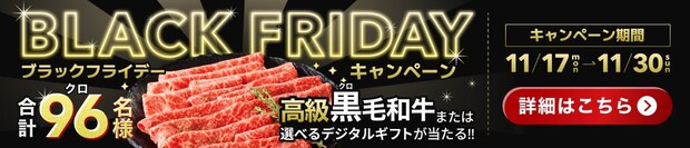 チラシが見られるお買い物情報アプリ「くふう トクバイ」では、対象レシートで応募すると総額10万円分の現金が当たる「レシート応募キャンペーン」や、96名さまに黒毛和牛またはデジタルギフトが当たる、「ブラックフライデーキャンペーン」を開催しています!