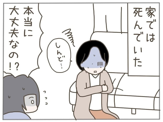 不調に耐えながらも、生活のため出社する叔母…。家の中では家事をする体力もなくぐったりとしていました。