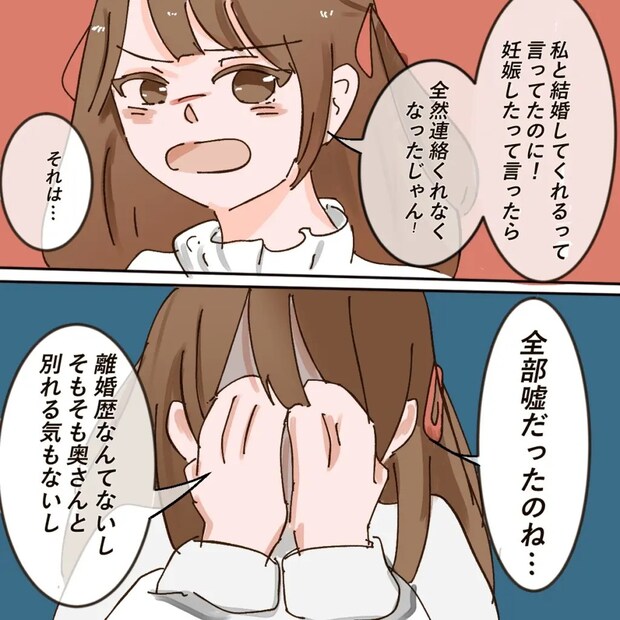 「私と結婚してくれるって言ってたのに!妊娠したって言ったら、全然連絡くれなくなったじゃん!」と怒るアイさんに、「それは・・」とまたハッキリしない夫に、「全部嘘だったのね・・離婚歴なんてないし、そもそも奥さんと別れる気もないし」アイさんの言葉を聞いて、