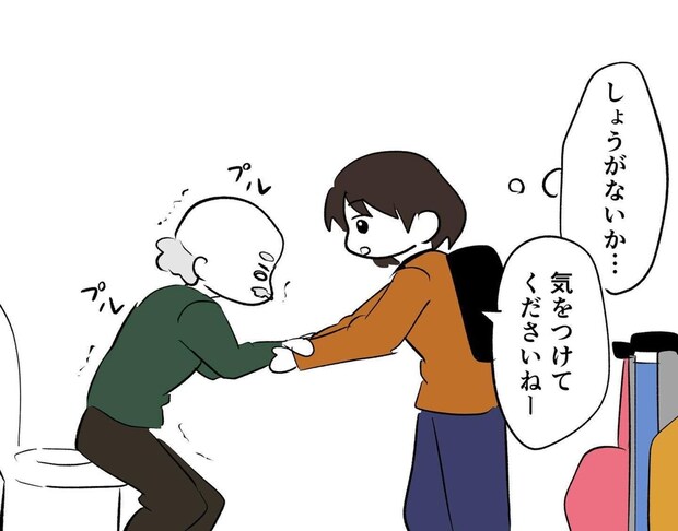 1人でトイレができないというおじいさん…。まいかわセミさんが感じたように、トイレ介助まで見ず知らずの個人が、1人で行うのは危ないですよね。