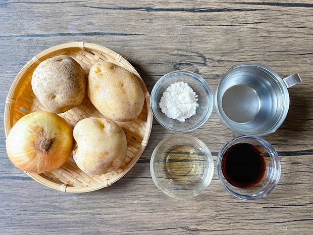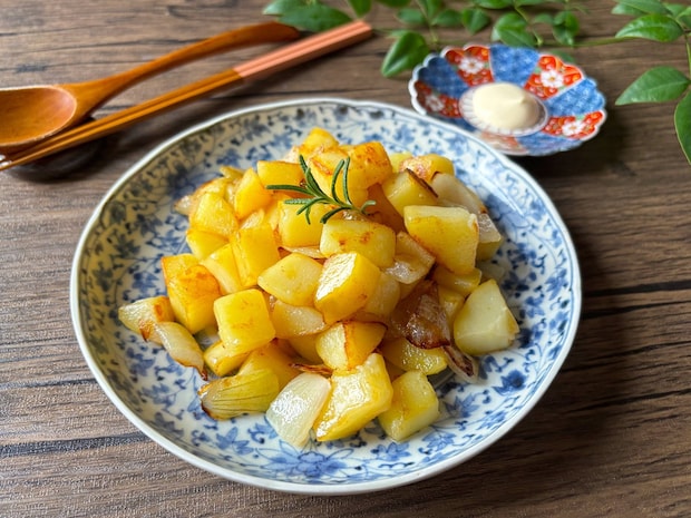 じゃがいもと玉ねぎをバターで蒸し焼きにするだけのシンプルレシピです。バターの風味が染みたじゃがいもと玉ねぎは、甘さが引き出されて絶品!しょうゆの香ばしさも相まってひと皿ペロリと食べられますよ。和食にも洋食にも合う副菜なので大活躍間違いなしです。材料(2人分)
