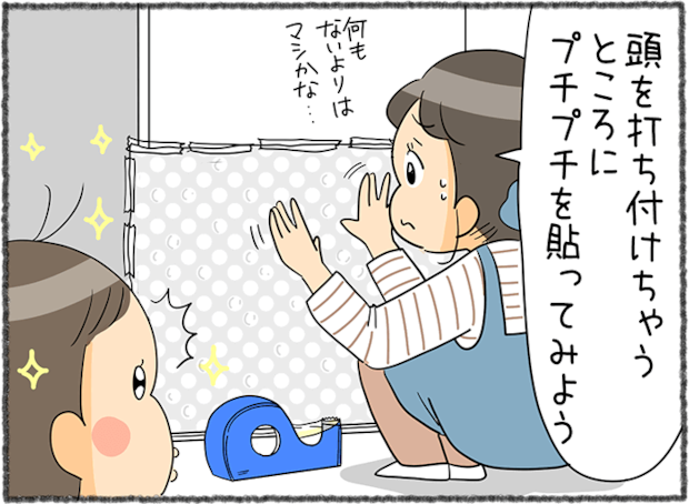 ママにかまってほしい時、冷蔵庫に頭を打ち付けて主張するようになったという1歳の息子くん。悩んだママさんは、まずは子どもの頭を守りたいと考えて緩衝材を貼ってみたそうです。すると、それが思わぬ効果を発揮し、頭突きそのものがなくなったのだとか。何がきっかけになるか分からないものですね。 1~2歳頃の子どもは、眠くなったり寂しかったり、大人の気を引きたい時にこのような行動(ヘッドバンキング)をする場合があります。年齢とともにおさまっていくといわれていますが、目の前で見ているママにとっては、子どもが心配でなんとかやめさせたいと悩みますよね。試行錯誤するママさんの気持ちに共感できる体験談です。