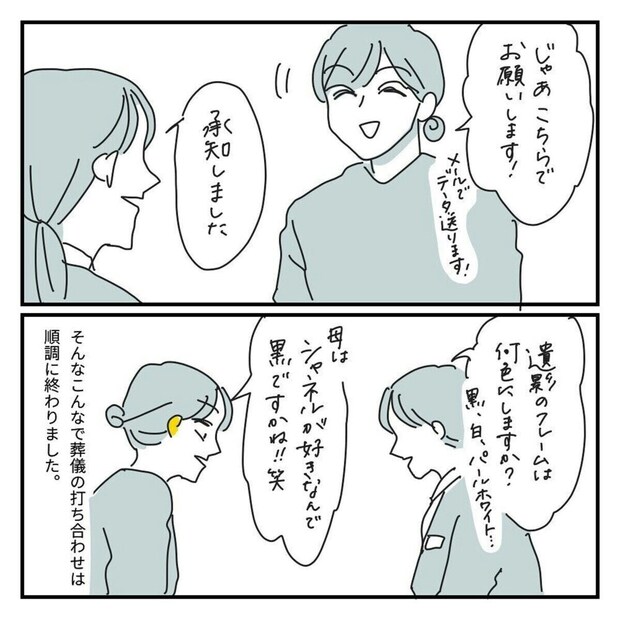 母が亡くなった直後、悲しむ暇もないほど、家族はやらなければならないことが山積みです。葬儀社との打ち合わせを無事に終え、母らしい遺影を選ぶことができました。