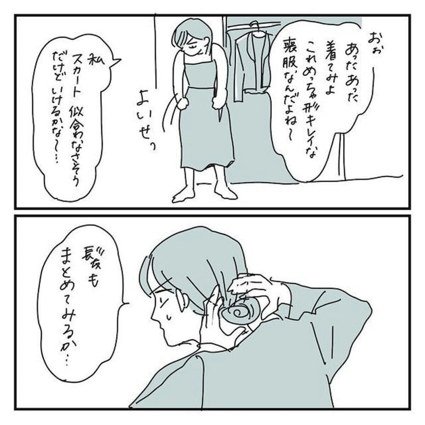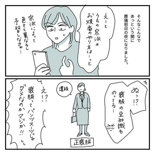 急きょ、母の喪服を借りることにしたキクチさん。鏡に映った自分の姿は、まるで生前の母のようでした。そして、葬儀当日も母が側にいてくれるような感覚で、迎えることができました。