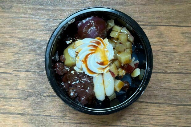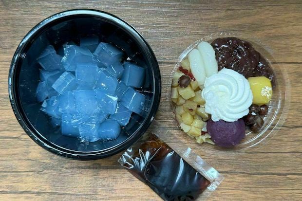 容器は、トッピング、寒天、黒蜜が分かれているセパレートタイプ。