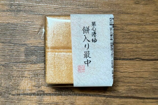 香ばしい最中種、甘さ控えめで小豆の風味が活きた餡、そして柔らかく伸びる求肥が楽しめる餅入り最中です。