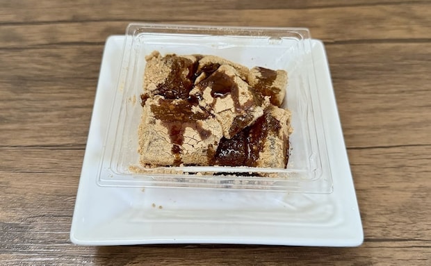 素朴な風味のきな粉と、上品な甘さの黒蜜との相性も抜群で、全体として甘すぎない、非常に食べやすい味わいに仕上がっています。