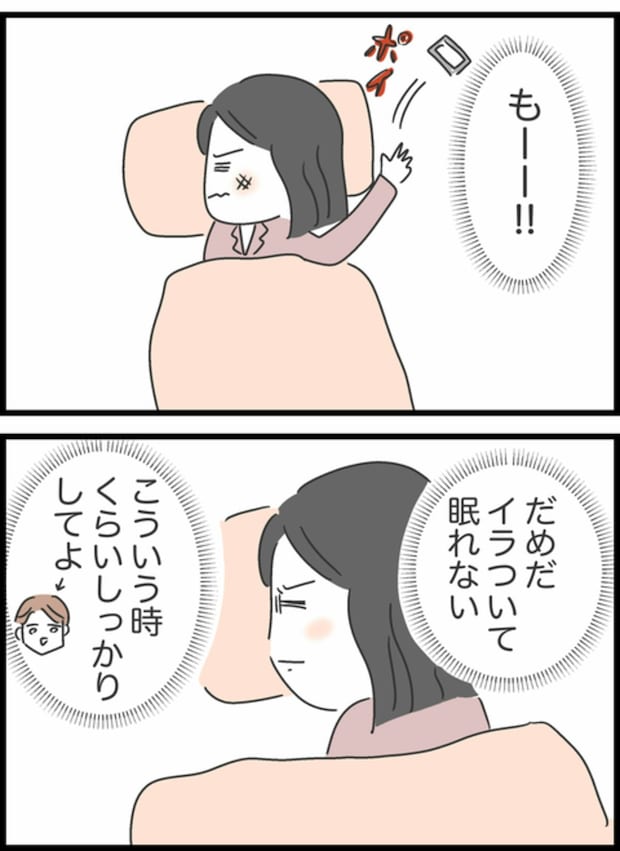 息子ゆうたの子育てにあまり関わってこなかったしょうた。そのため、ようこが熱で休んでいるにもかかわらず、子育てでわからないことがあればラインでガンガン質問攻め。ついにようこもイラついて眠れなくなってしまい…。