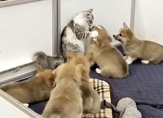 たくさんの犬さんと一緒に暮らしているこちらの猫さん。