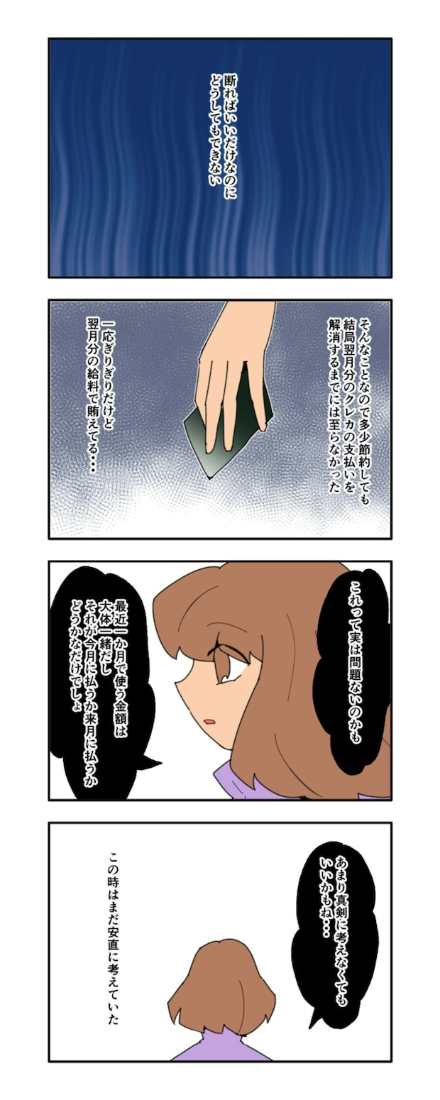 ハルミは、今月の支払いを来月の給料でまかなう生活にすっかり慣れてしまい、「これで問題ないのかもしれない」と思い始めていました。そんなふうに気楽に考えていたある日、大きな事件が起こります。