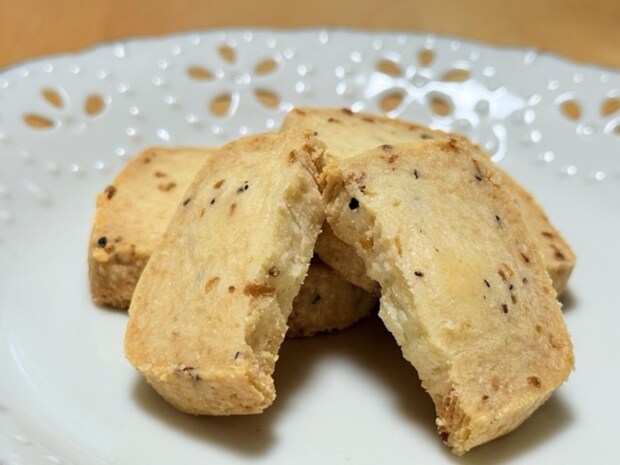 厚焼きタイプですが、食感は意外とソフトで「しゃくっ」「ほろっ」と崩れるやさしい口当たりです。