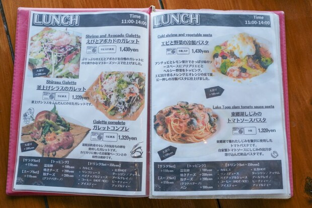 スイーツ以外にガレットやパスタなどのお食事のメニューもあります。