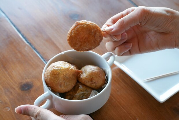 QQボールはもちもちとした食感が特徴で、さつまいもを使用したひと口サイズのドーナツです。