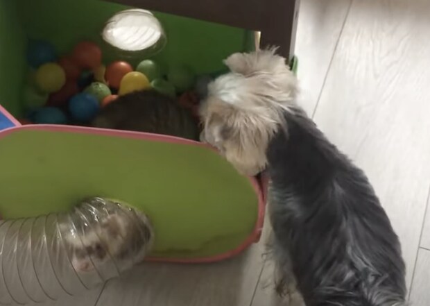 フェレットさんのおもちゃの周りで