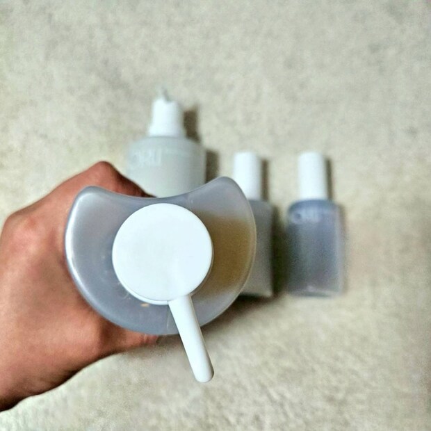 で、重要なのはここから。実は、シャントリ使用だけの日でも翌朝のしっとり感は感じられたんですが、髪のパサつきとか、素髪のキレイさを求めるなら、アウトバスアイテムは使っておきましょう。まずはセラムを半乾きの髪に塗布!