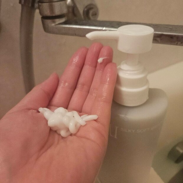 しっかり予洗いしてから挑みましたが、モッコモコのいい泡! 洗っていて気持ちのいい泡が立ちます。いいね~、洗ってて楽しい! 泡切れはとてもよく、さっとトリートメントを塗布。これも、洗い流したあと残る感じはありませんでした。質感は文句なしですね。