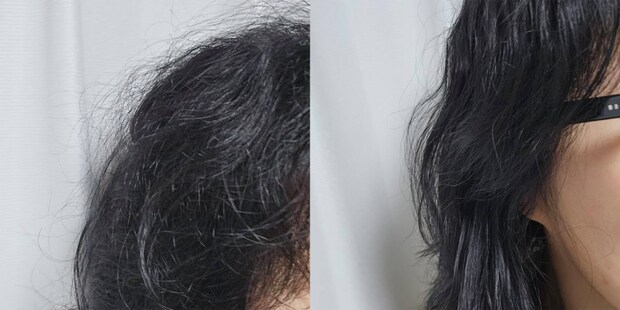 【SINORU】比較はこんな感じ。左が普段、右がSINORU4アイテム使用時の翌朝です。パサつきなし!