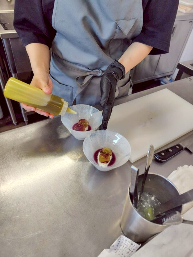 注文をしてから、シェフパティシエの三浦さんが手際良くデザートを完成させていきます。