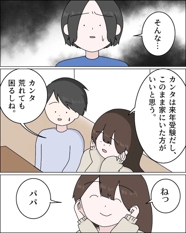すると、「カンタは来年受験だし、このまま家にいた方がいいと思う。カンタ荒れても困るしね?」とジュリちゃんが提案した後、「ねっパパ?」と言うと、