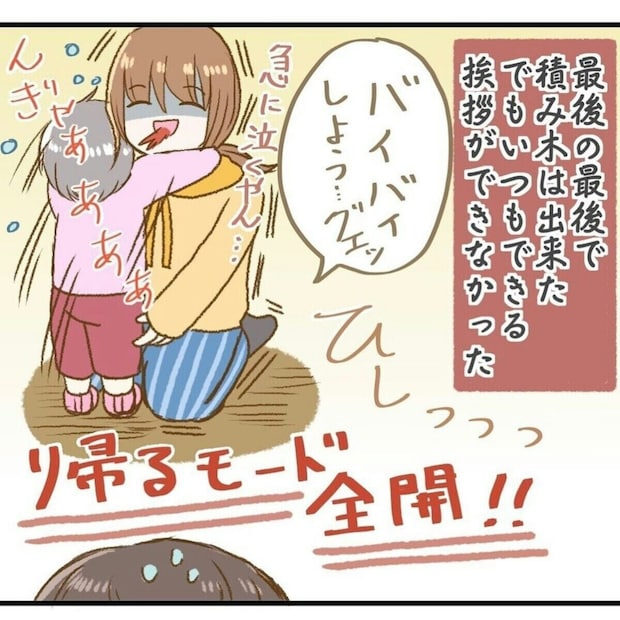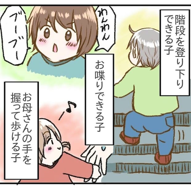 育児相談では「もっと頑張って」と言われ、周りの子どもたちとわが子の様子を比べてしまい、逃げるように会場を後にしたのんまるさん。必死でこらえていた気持ちがあふれ、涙が止まらなくなってしまいました。