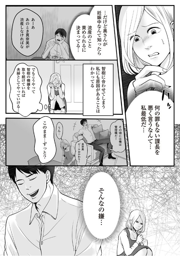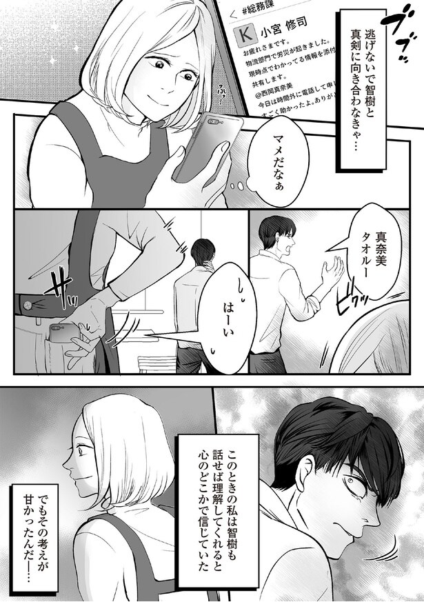 前回、家に帰ると小宮課長から仕事のトラブルで電話がかかってきた。真奈美のフォローで事なきを得たが、電話を切った後に智樹から「今の電話は男か?」と詰められてしまい…!?