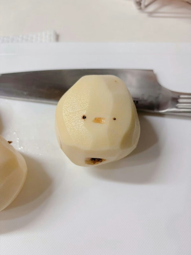 投稿者・すぎたさんは、じゃがいもの皮むきが終わったとき、かわいいお顔に気が付きます。