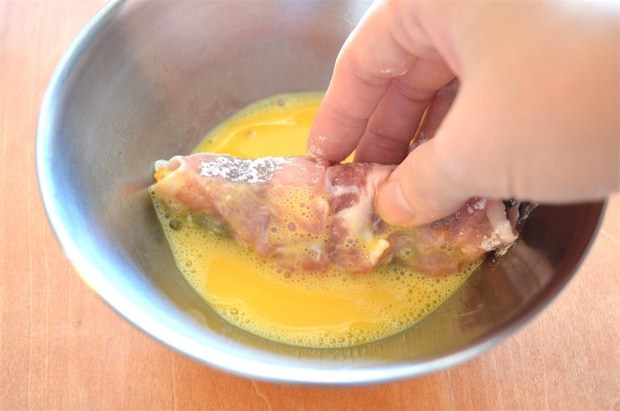 3. 小麦粉、溶き卵、パン粉の順で衣をつけたら、きつね色になるまで油で揚げる。
