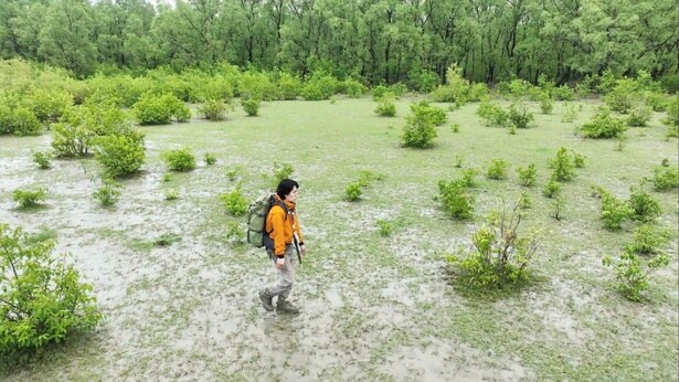 歩き始めたくるまは、「生きて帰れるのだろうか」「本当に『M-1』しかできなかった」「他の能力はゼロ」と不安を漏らしつつ、見渡す限り広がる沼地の中を、どんどん進んでいく。迷いのない足取りに見えたくるまだが、スタートからわずか5分で、過去シリーズ初の大ハプニングが発生。カメラマン含むスタッフたちが大慌てとなる。