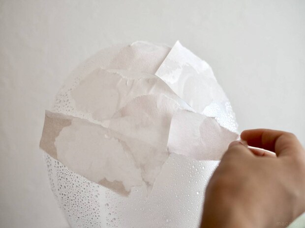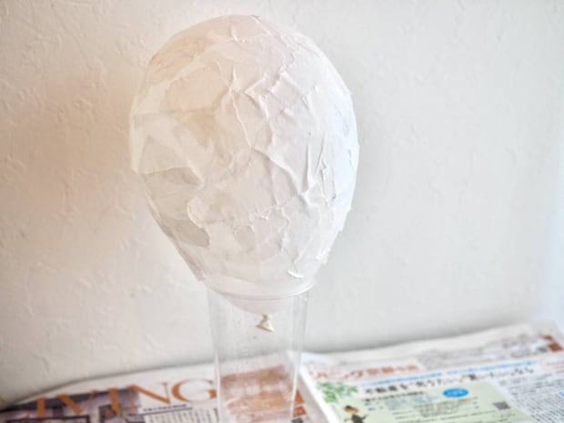 まずは半紙を手でやぶって小さくカットし、水で濡らして風船にぺたぺたと貼り付けていきます。こうすることで風船割ったときに崩れにくくなります。
