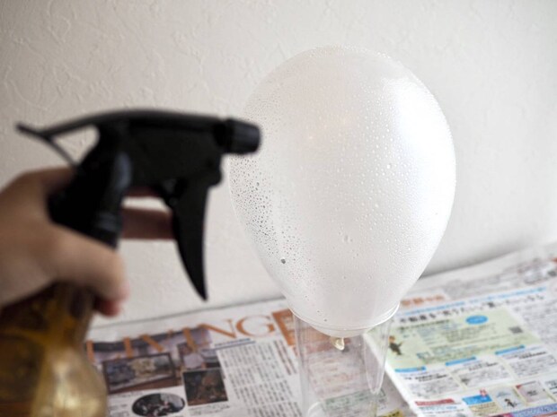 作りたいランプシェードの大きさに合わせて、風船を膨らませます。丸い形にしたい場合は空気を入れすぎず、少し楕円になるくらいがバランスよく仕上がりますよ。