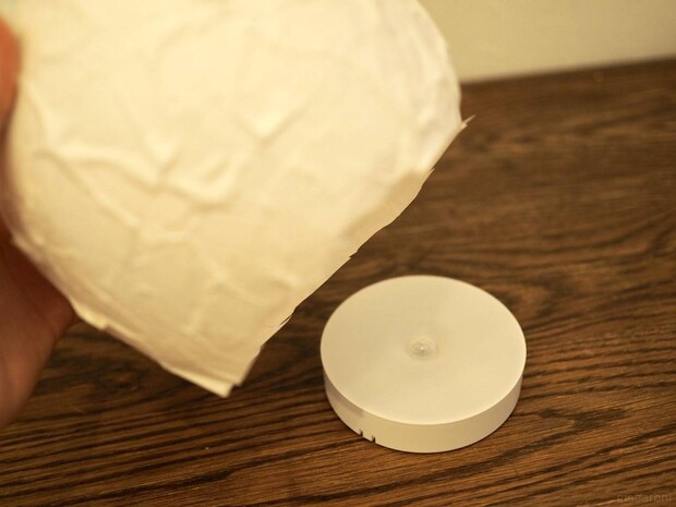 LEDライトの上から被せれば、手作りランプシェードの完成です。