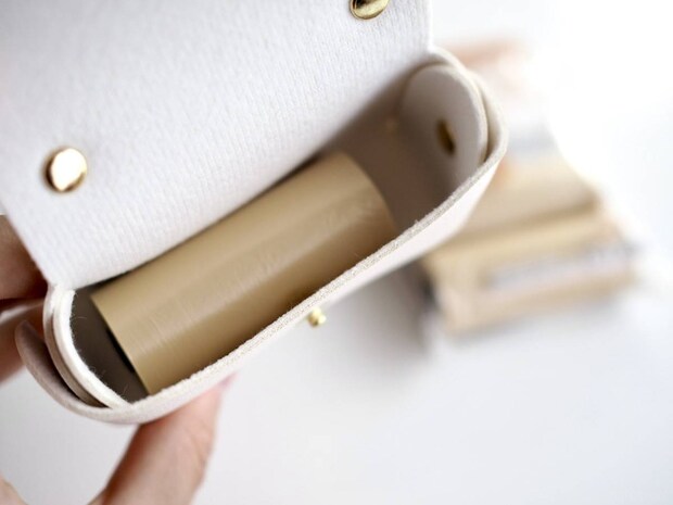 ホルダーの下部に穴が開いていて、スッと取り出せる仕様になっていますよ。バッグの中で袋がバラバラにならず、必要なときにすぐ使えるのが魅力です。
