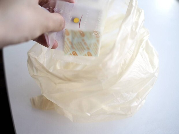 ちなみに筆者はダイソーの「お散歩マナー袋」(3ロール入り税込110円)を使用しましたが、サイズがあえばどんなロール袋でも使用可能です。