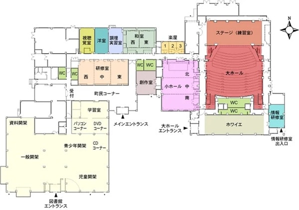 「佐土原総合文化センター」は、合併前の旧佐土原町により設置された図書館や劇場型ホールを備える複合型施設。
