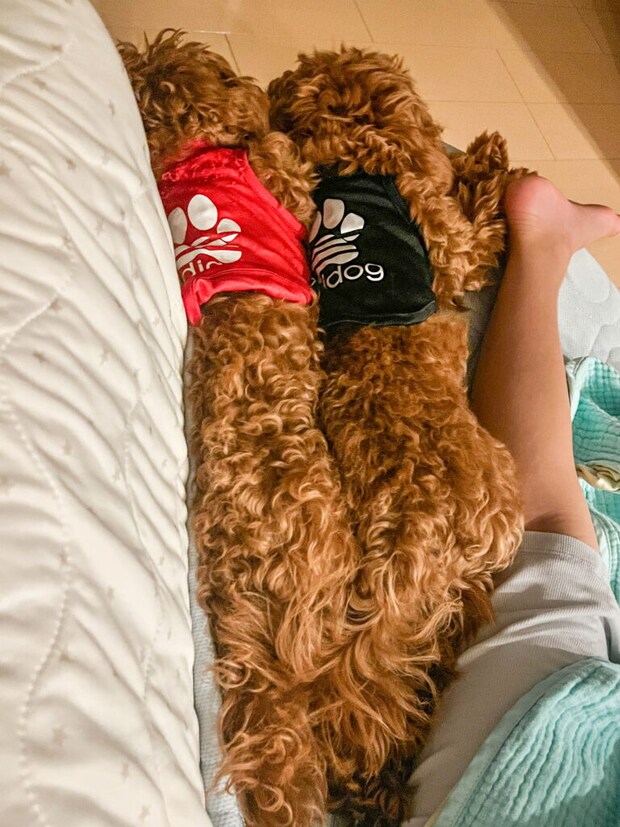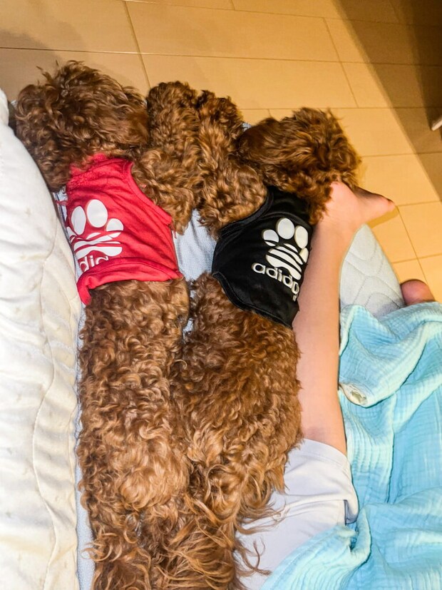 鳥取県倉吉市で暮らす、マルチーズとトイプードルのミックス犬、マルプーの双子、幸くん(こお、オス、11カ月)と粋ちゃん(すい、メス、11カ月)。