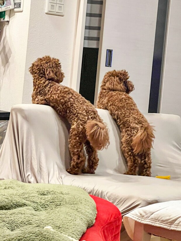 ソファから家族の帰りを待つ2匹。