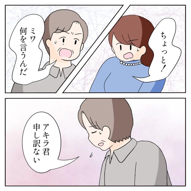 「ちょっと!」母に言った私と同時に父も「ミワ、何を言うんだ」と慌てて止めました。そして「アキラ君、申し訳ない」と頭を下げました。