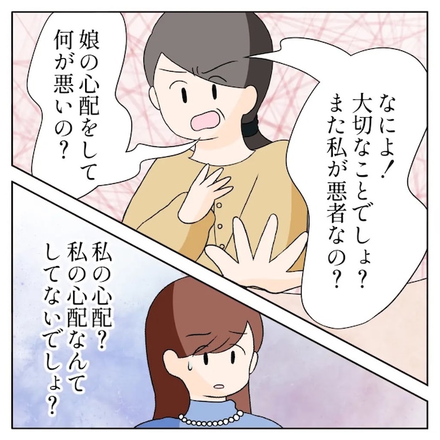 母はどんどん不機嫌になり「なによ!大切なことでしょ?また私が悪者なの?娘を心配して何が悪いの?」と言い張りました。でも私は知っていました。私の心配なんてしていないでしょ?