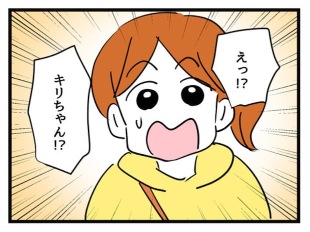ボールが転がった先はキリコさんと大志くんが遊んでいた場所。すると、驚いた様子でキリコさんの名前を呼びます。