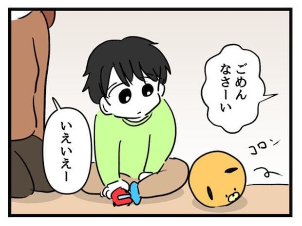 楽しそうに遊ぶ親子。キリコさんと大志くんではなさそうですね。ボールが転がった先にいたのは?