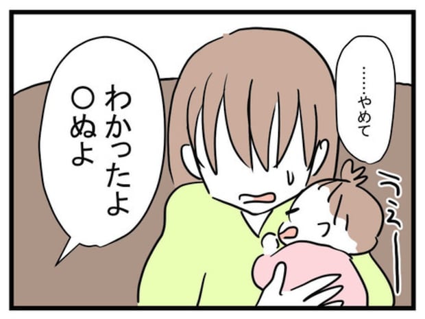 がまんの限界に達した かすみさん…。思わず出た言葉が、彼を怒らせてしまいます。泣きわめく すぐるの声で、寝ていた娘が目を覚ましてしまい、かすみさんは反論する気持ちがなくなってしまいます…。