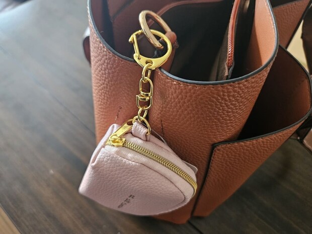 またこちらには金具のパーツが付いているので手持ちのバッグに引っかけることができます!小さいと見失いがちになる小物でも安心ですね♪